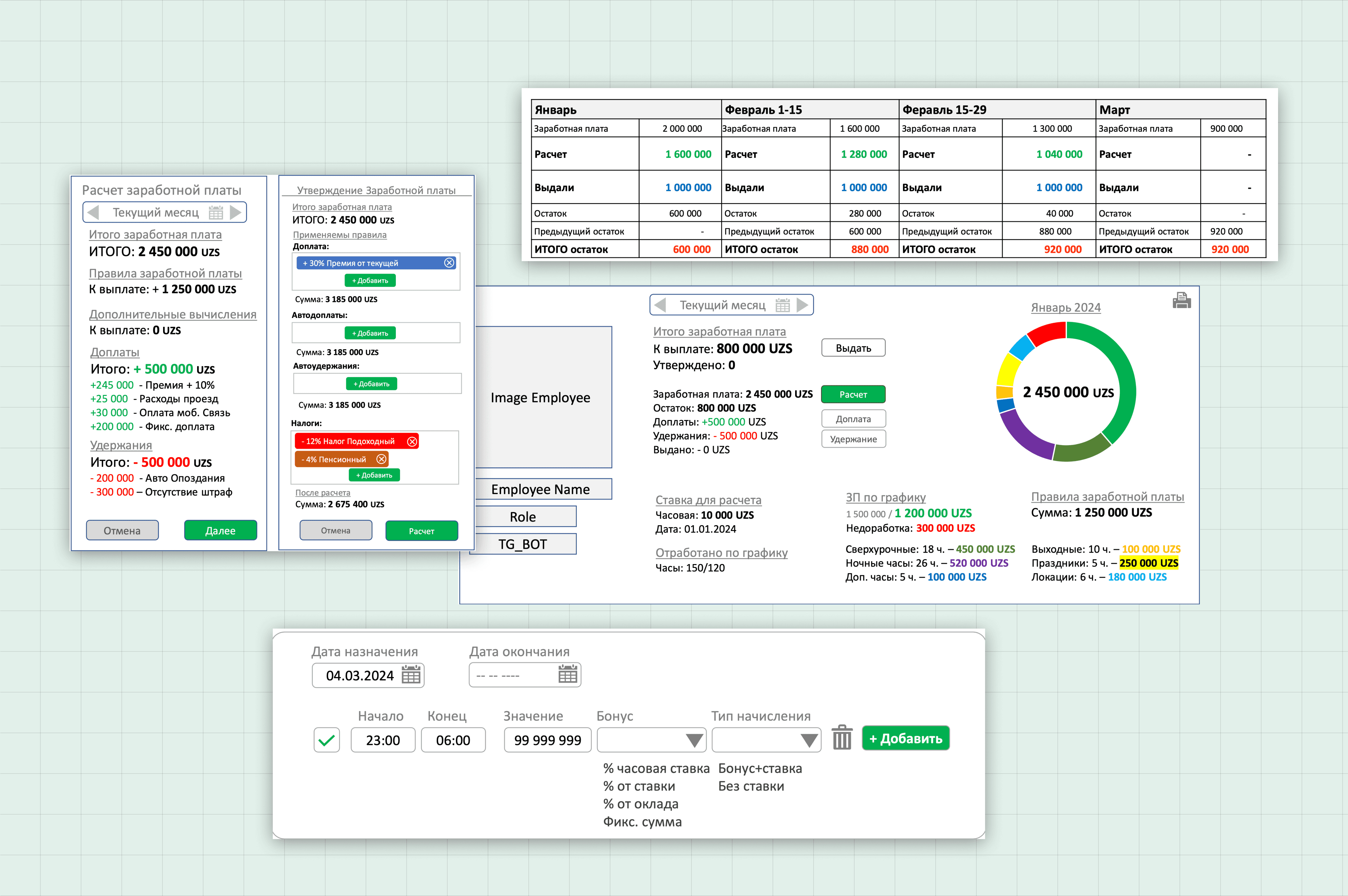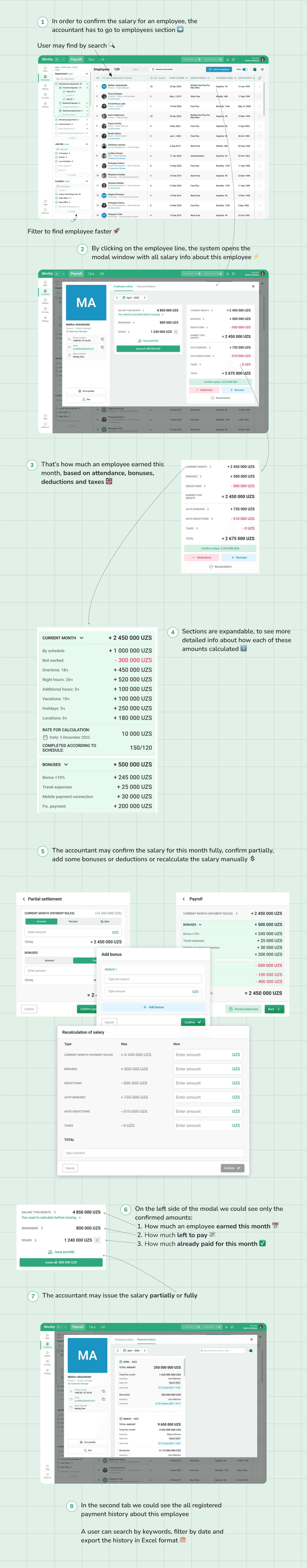 Key Takeaway: clients need detailed overview of how the salary is calculated, history of payroll, automated salary calculations and much more…